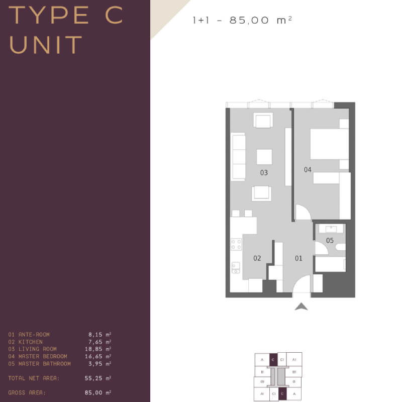 Housing types: 1 + 1, 2 + 1, 4 + 1, 5 + 1, 5 + 2, 4 + 2