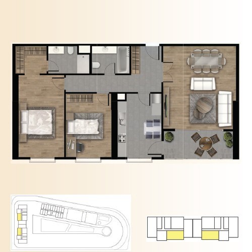 1 + 2 and 1 + 3 area ranging from 139 to 156 M2
