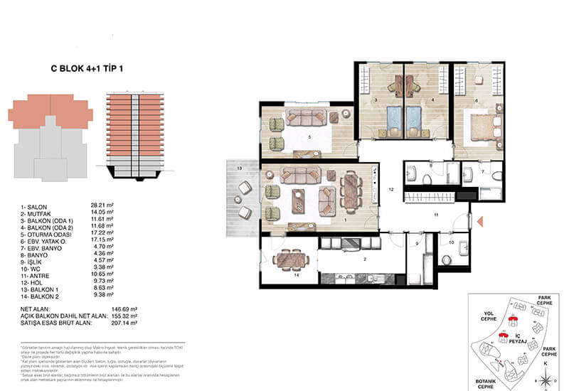 | Rooms | 1+1, 2+1, 2+1 Duplex, 3+1 Duplex, 2+1 Triplex, 4+1 Duplex, 4+1 Triplex, 5+1 Triplex |