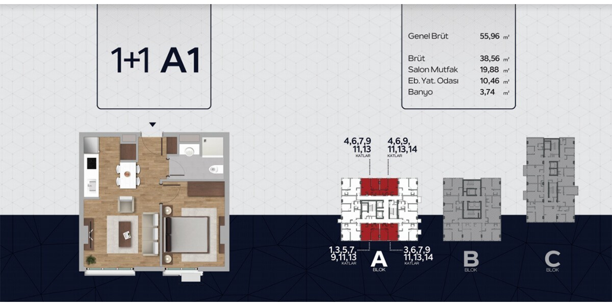 | 1+1 | 60 - 71 m2 | 186,000 USD | 238,000 USD |