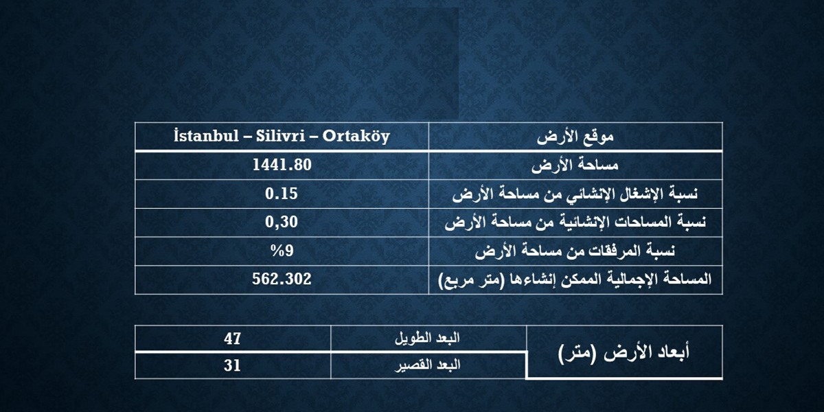 Project features: Land for sale in Istanbul Silvery with a stunning natural view, with an area of 1441.80 square meters The number of floors is 2.5 plus the net area ratio of the villa from the land area is 30%