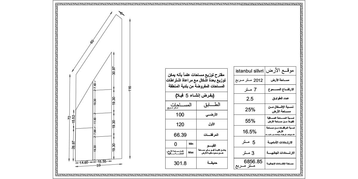 Project features: Land for sale in Istanbul Silvery with a stunning sea view, with an area of 2012 square meters The total construction area is 6856.85 square meters in addition to the net area ratio of the villa from the land area 55%