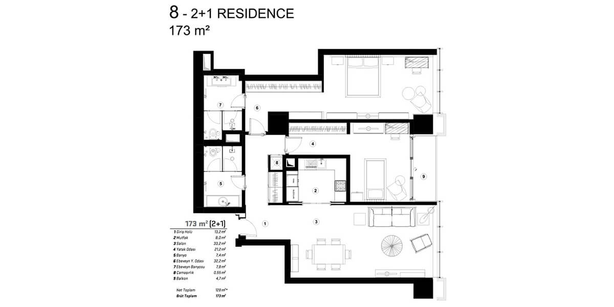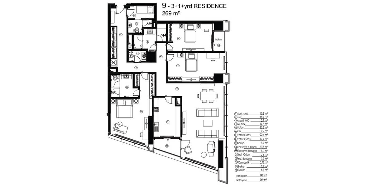 • Most of the apartments in this Maslak 42 project have large and spacious balconies in order to enjoy panoramic views of Istanbul and the historic Bosphorus.