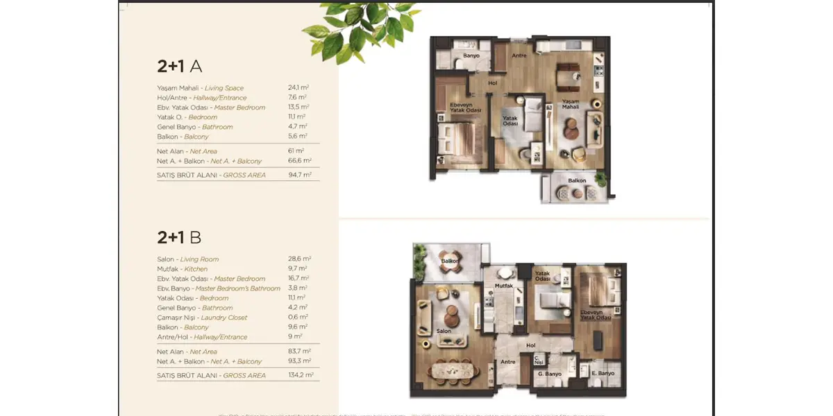 Rooms 2+1, 2+1 duplex, 3+1 , 3+1 duplex, 3.5+1, 4+1, 4.5+1, 4+1 duplex, 4.5+1 duplex, 5+1