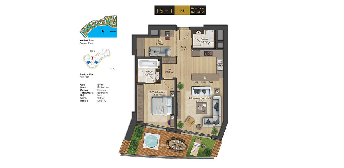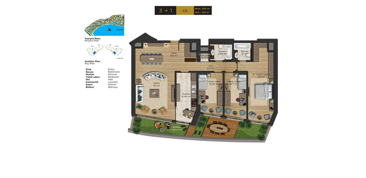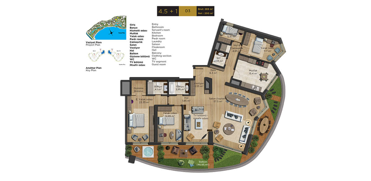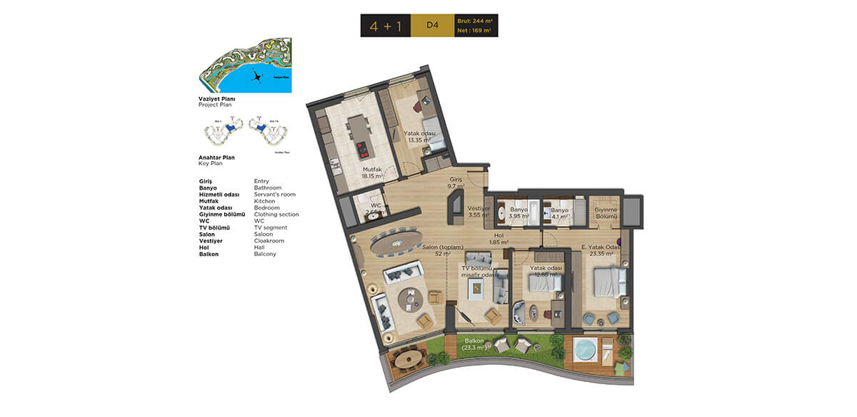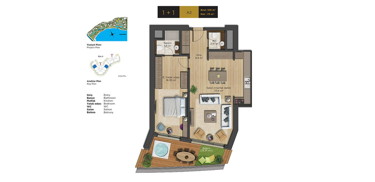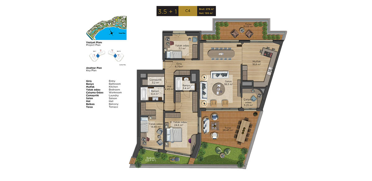Rooms 1+1 , 1.5+1, 2+1, 2.5+1, 3+1, 3.5+1, 4+1, 4.5+1