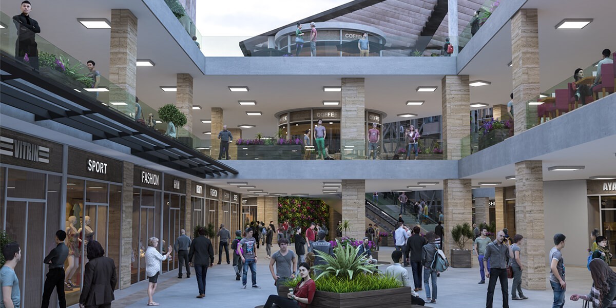 In the project there is an open shopping mall consisting of 307 stores in addition to the Covered Market and Gold Street, which includes the best goldsmiths