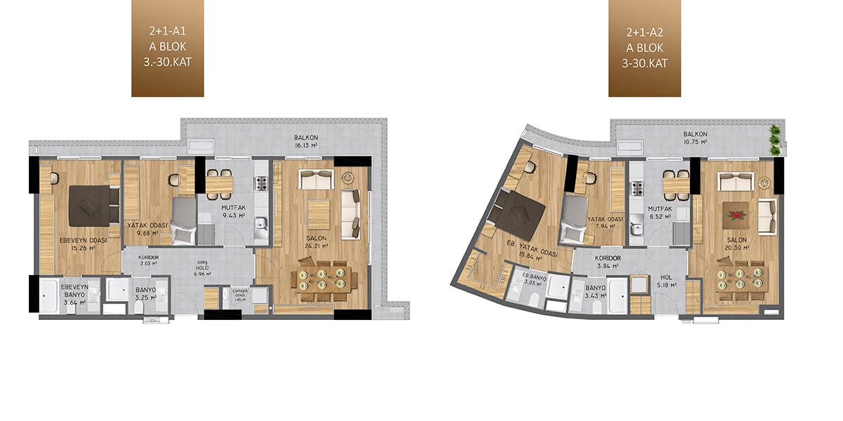 - أنماط الشقق المتاحة: 2+1، 3+1، 4+1
