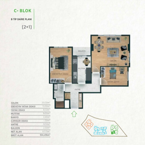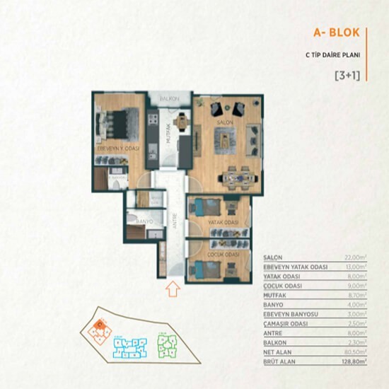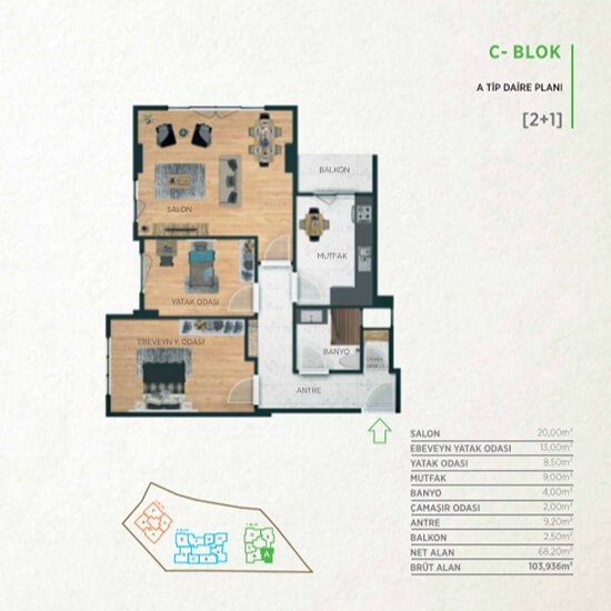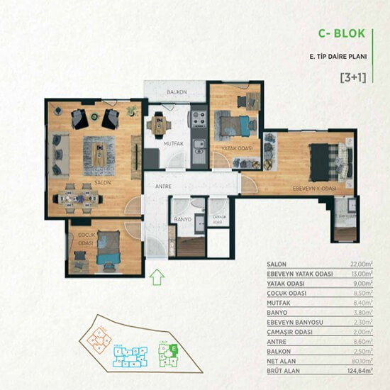 | 3+1 | 190 m2 | 310,000 USD | 440,000 USD |