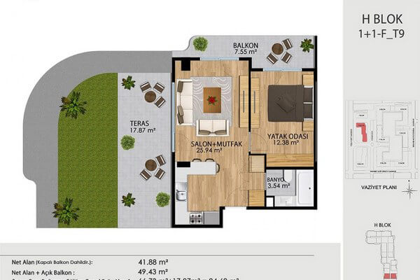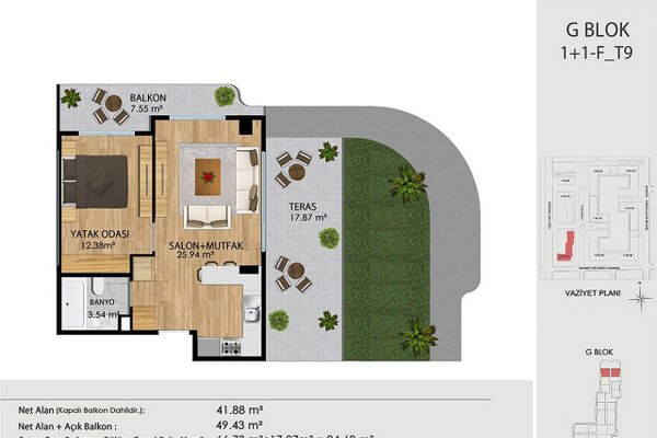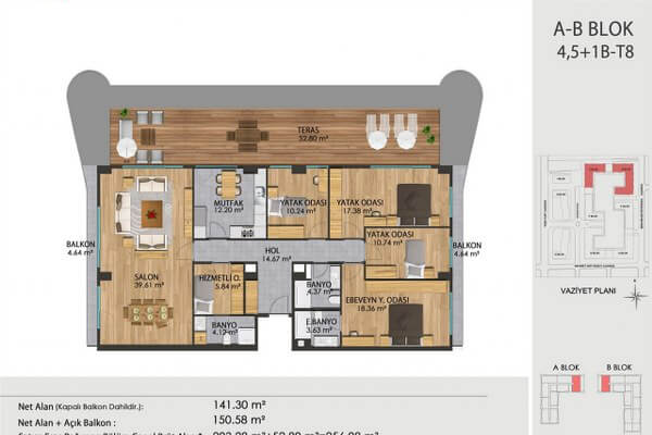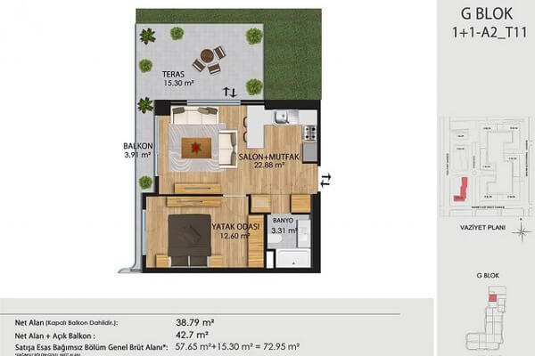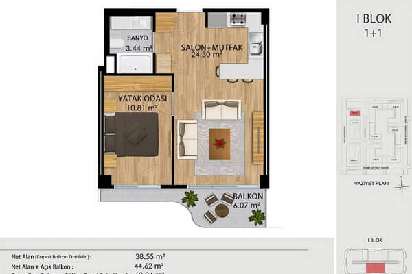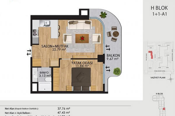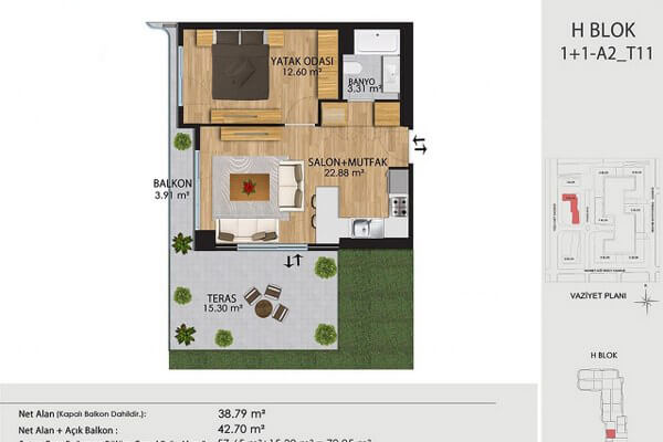 يتكون المشروع من 1160 شقة و 50 فيلا و 110 وحدات تجارية. تبلغ مساحة 1 +1 مساحة 58 مترًا مربعًا و 73 مترًا مربعًا ، تتراوح شقق 2 + 1 بين 88 و 143 مترًا مربعًا ، و 3 + 1 شقق تتراوح مساحتها بين 145 و 198 مترًا مربعًا. هناك أيضا 3.5 + 1 ، 4 + 1 و 4.5 + 1 الشقق في المشروع.